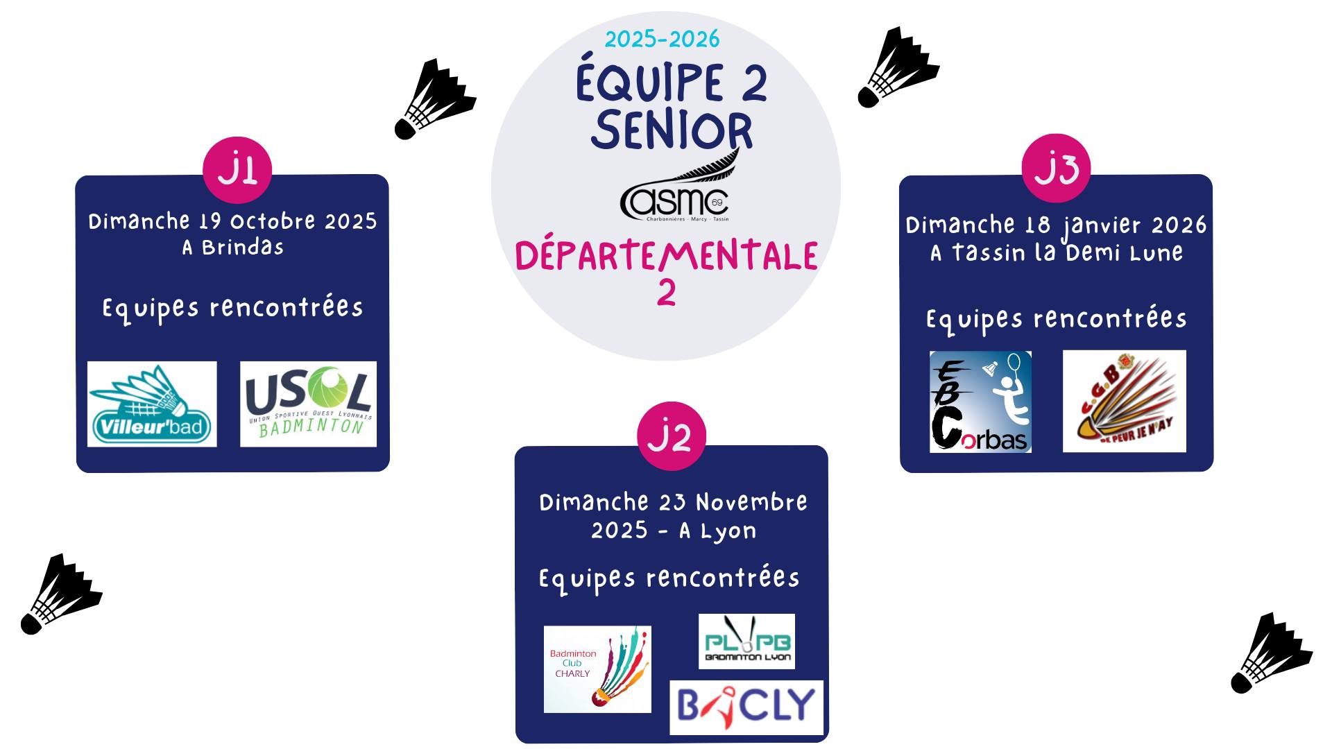 Pour cette nouvelle saison 2024 – 2025, voici le calendrier de l’équipe 2, sénior, qui évoluera en DépartementalE 3, ainsi que ses adversaires Les résultats/ classements détaillés sont disponible sur la platforme ICBAD