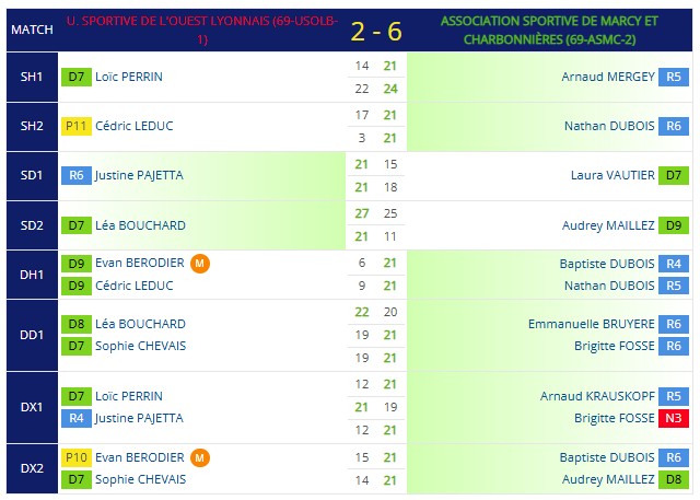 6-2 contre USOLB69-1 (Union Sportive de l’Ouest Lyonnais).