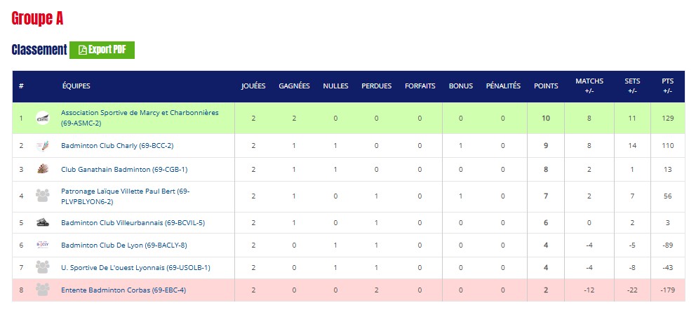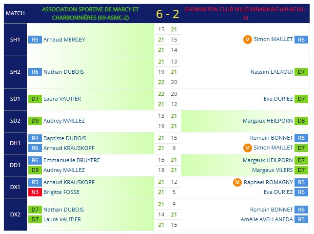Dimanche 19 octobre 3-5 contre BCVIL69-4 (Villeurbanne) 5-3 contre GSL69-3 (Groupe sportif Lugdunum) Un démarrage qui ne passe a rien d'une égalité, rattrapé par une victoire l'après midi. Prochaine journée avec 3 rencontres le 23 novembre à Bron. ** Aymeric Daret...