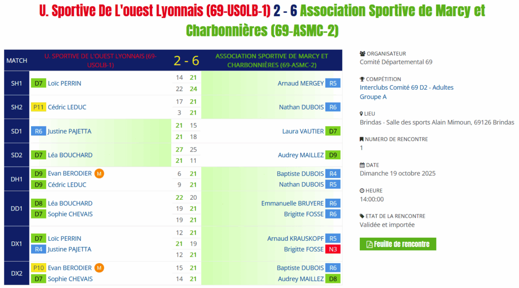 Promobad jeunes – Étape 1 – Oullins