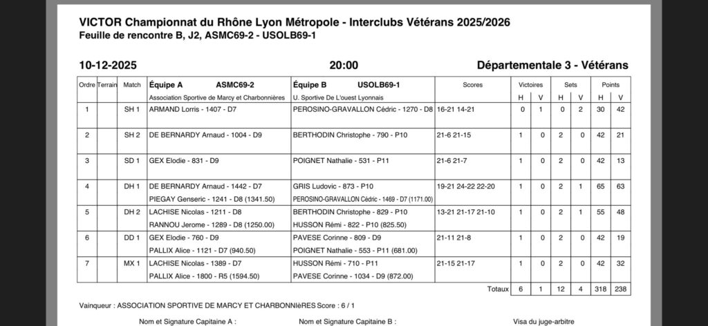 Prochaine rencontre contre le BACO à oullins le 28/1/2026
